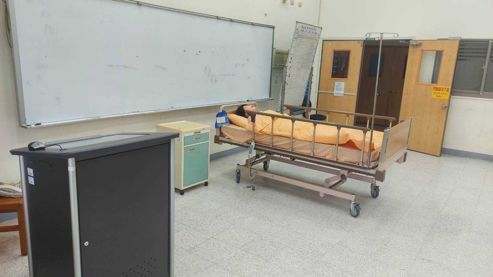本示教室主要提供基本護理學實驗課程使用,教室內分為技術示範教學區及練習區,藉由模擬病房之情境,學生可熟練基本護理技術,教師從旁協助指導並完成技術評量。為提升教學品質,教學區有攝播影設備、移動式直錄攝播影音系統,可將老師技術示範操作過程同步投影至螢幕。各組練習區共12張練習床,各項設備、練習工具及用物完善,供學生實際操作練習。