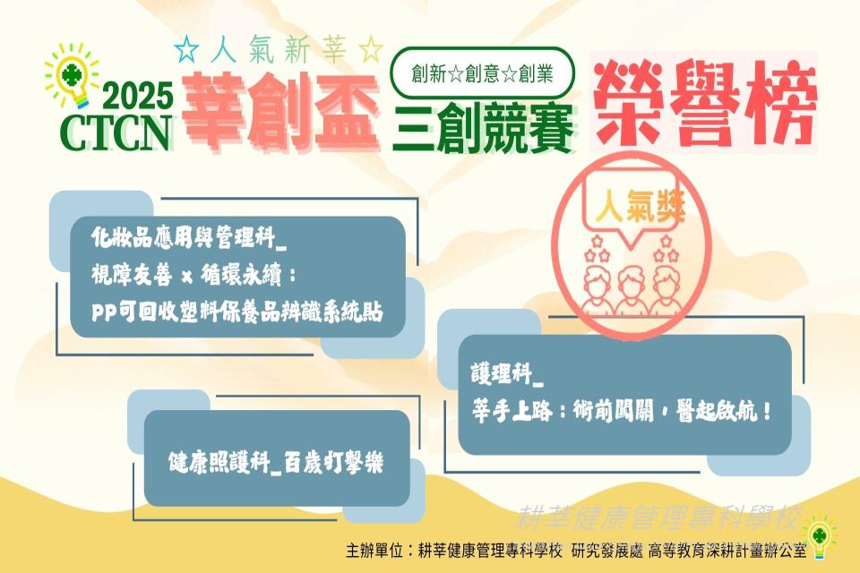 2025 CTCN 莘創盃三創競賽 得獎名單公告