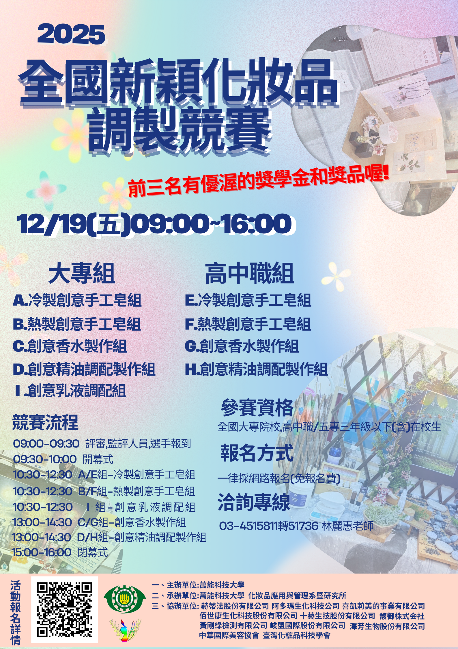 四、 本年度新增大專組「創意乳液調配組」,敬邀老師指導學生參賽。
