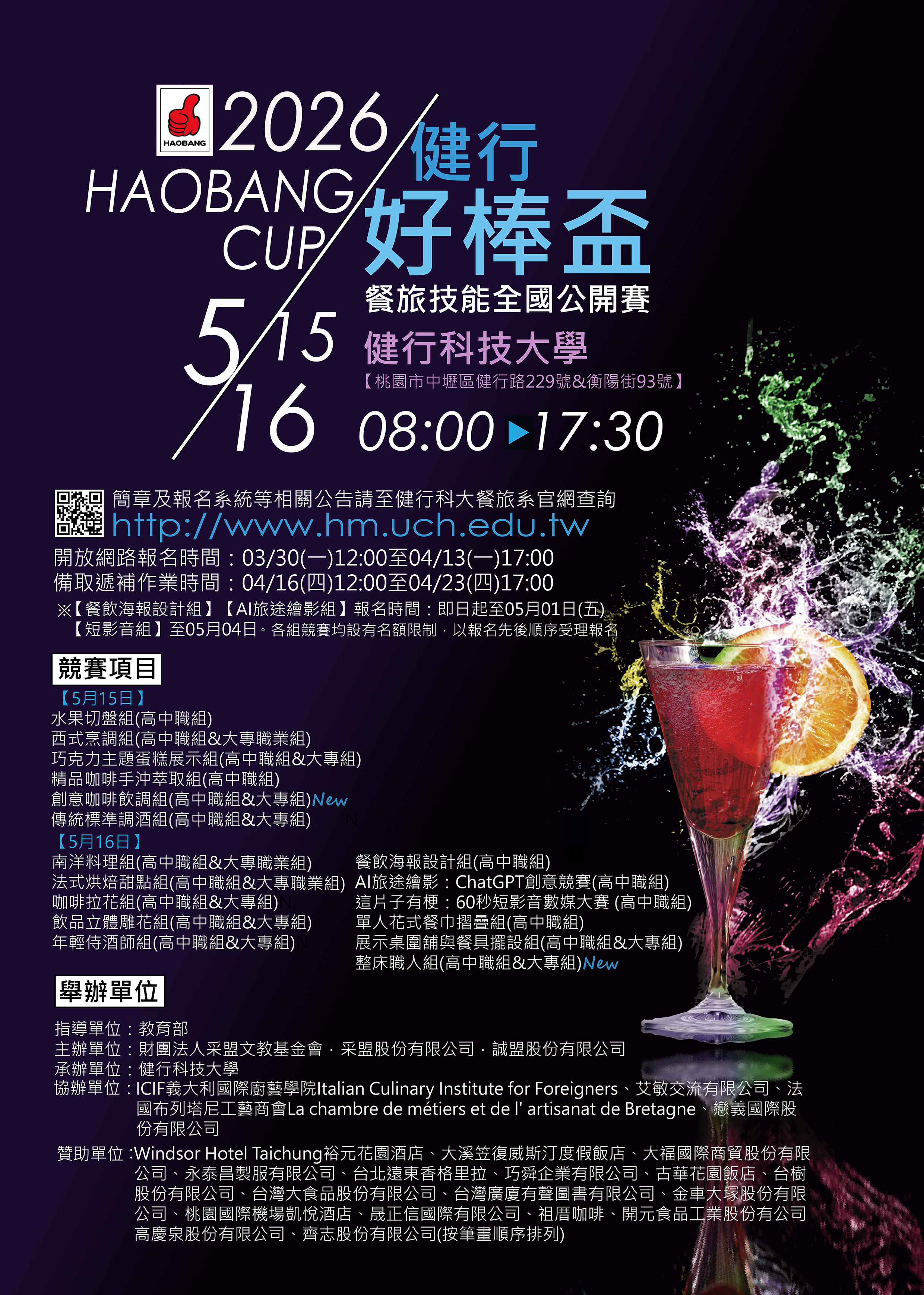 (二)決賽:本校觀光餐旅學院大樓3樓飲調教室M310。
