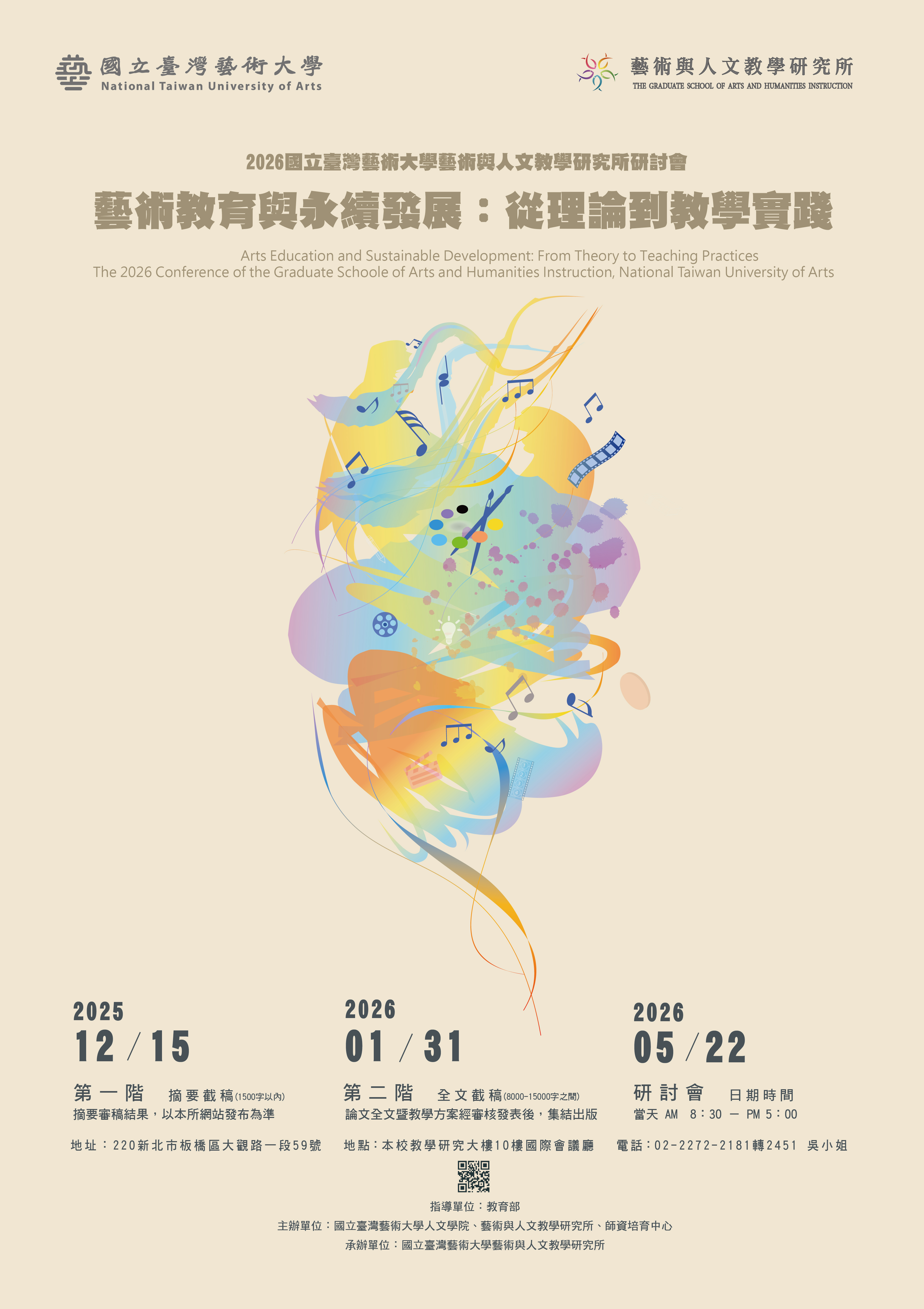 | 外來文公告教學資源中心臺灣藝術大學舉辦「藝術教育與永續發展:從理論到教學實踐...2025/11/202026/05/22 |