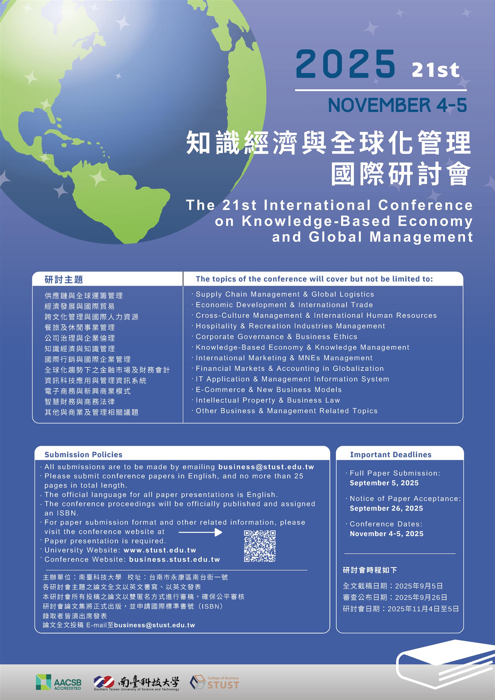 (一)專屬網頁:https://business.stust.edu.tw/tc/node/conference。
